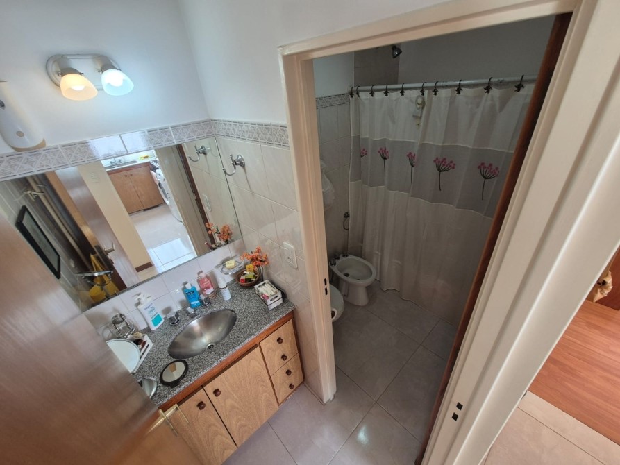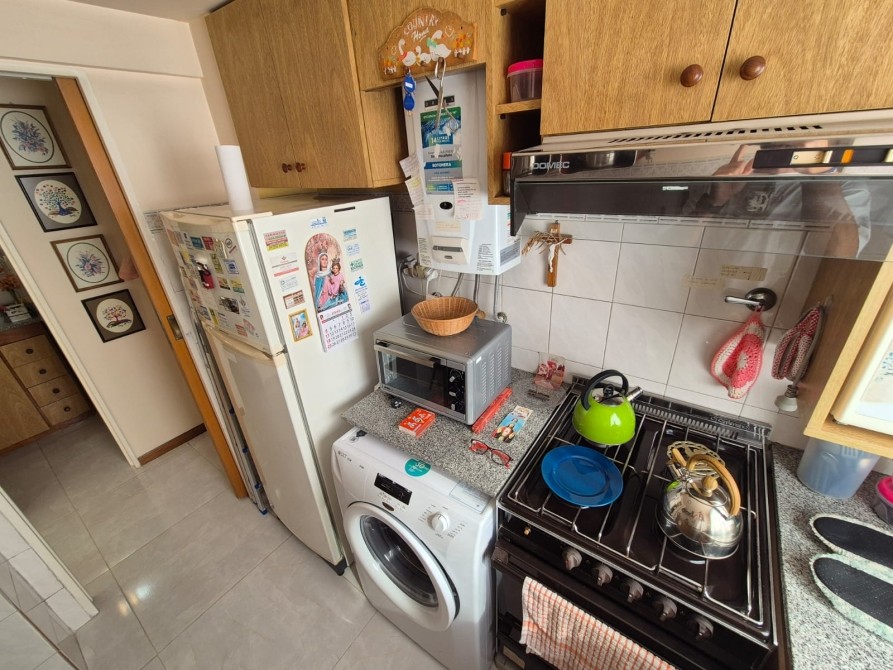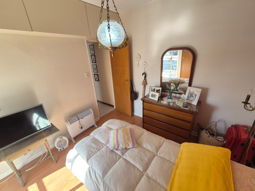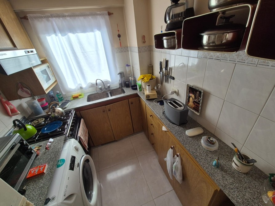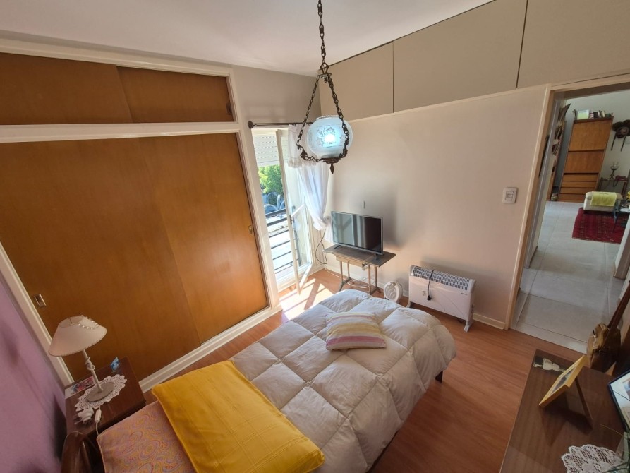 Consta de: Hall con placard embutido; Living - comedor amplio con recibidor de vidrio, juego de sillones (4 piezas) con mesa ratona de vidrio, mesa ovalada de vidrio con 4 sillas, mueble antiguo amplio y ventanal con salida al balcón; cocina con alacena y bajo mesada totalmente equipada, lavarropas y horno eléctrico; un dormitorio con placard embutido, cama de una plaza, chifonier y mueble con tv; un baño completo con bañera y todos sus accesorios; balcón.